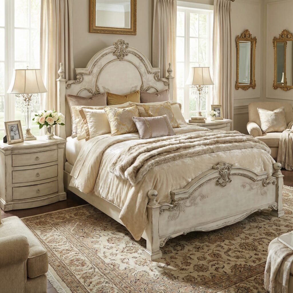 Marqueza Carved Wood King Bed with Ornate Headboard – Waxed Off White