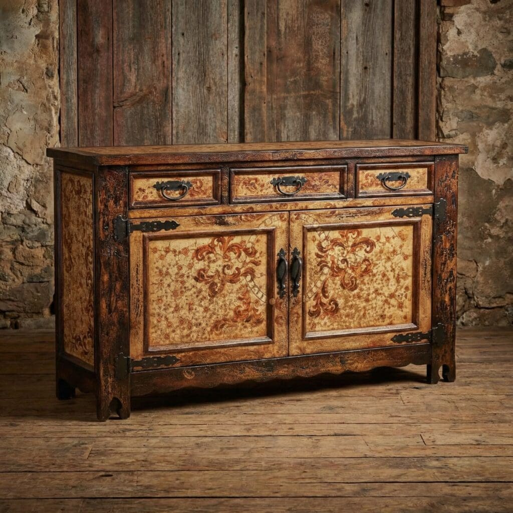 🎨 Finishes: Distressed hues, antique washes & layered patinas