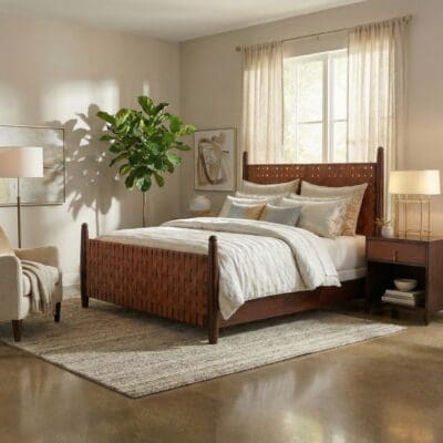 Built from solid wood and expertly finished, the Ariel Bed offers both durability and refined elegance. The warm leather tones paired with the natural wood frame bring balance and sophistication to modern rustic, transitional, and classic interiors alike.