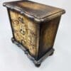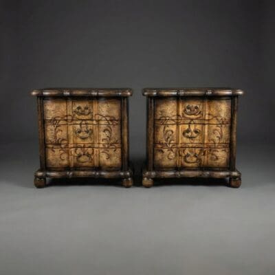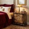 Its compact size makes it practical for bedside storage, while its decorative finish makes it a standout accent piece. Crafted with wood construction, some wood veneers may be used in certain areas to achieve its refined shaping and detailed finish. The Bellissimo Nightstand works beautifully in Tuscan, traditional, rustic luxury, Spanish, old-world, and warm transitional interiors, adding texture, color, and handcrafted beauty to the room.