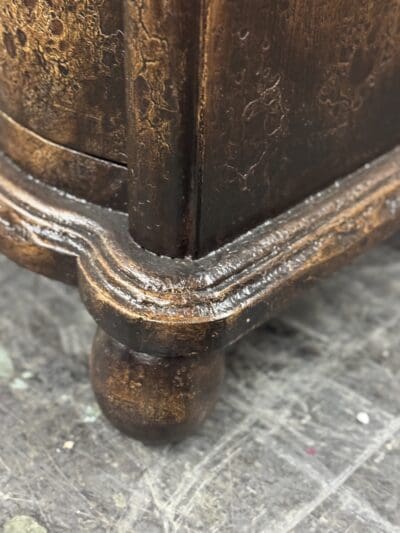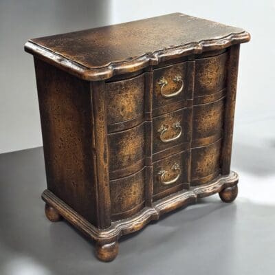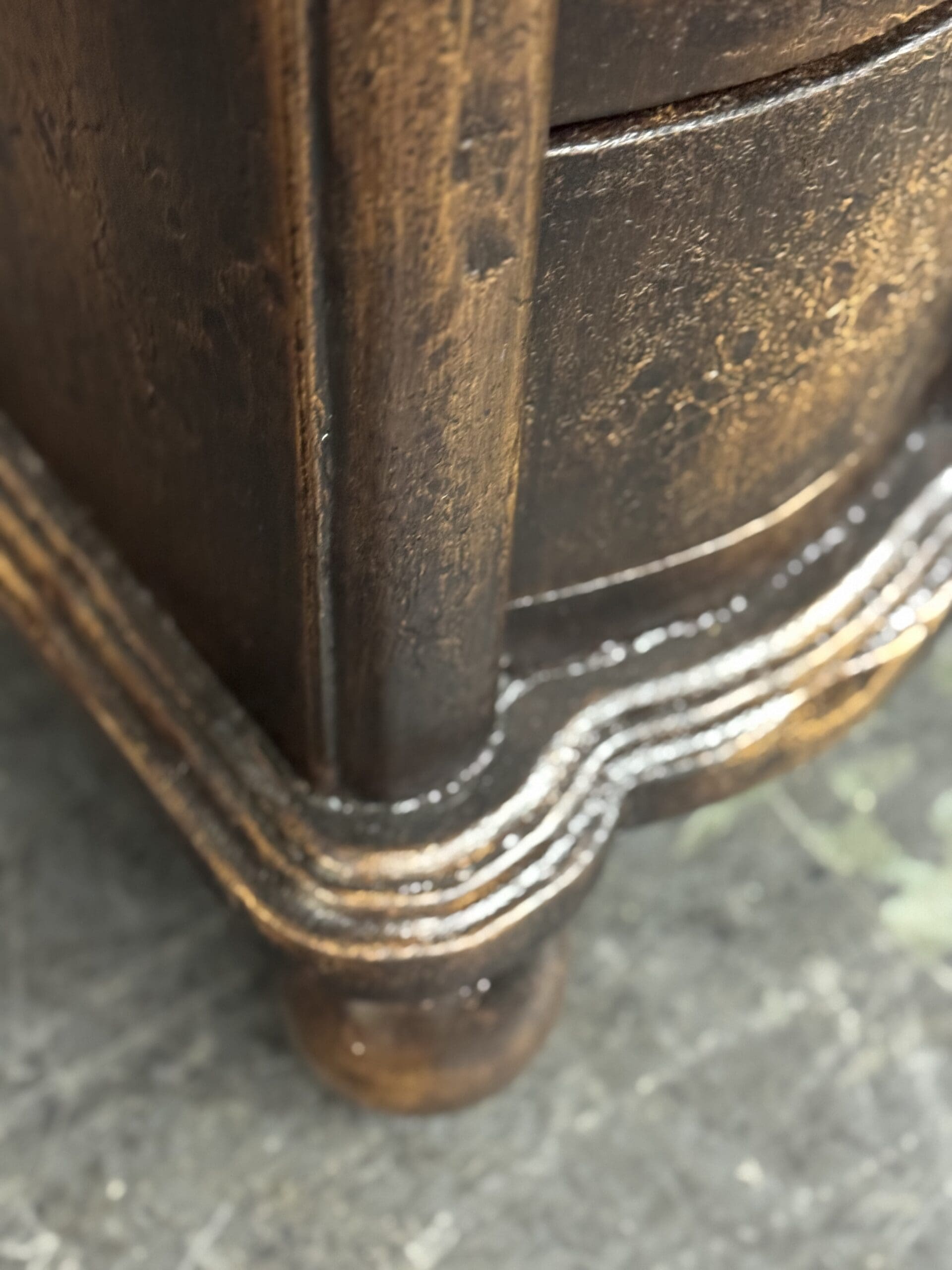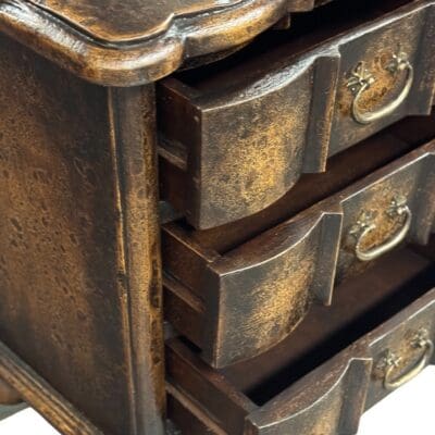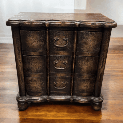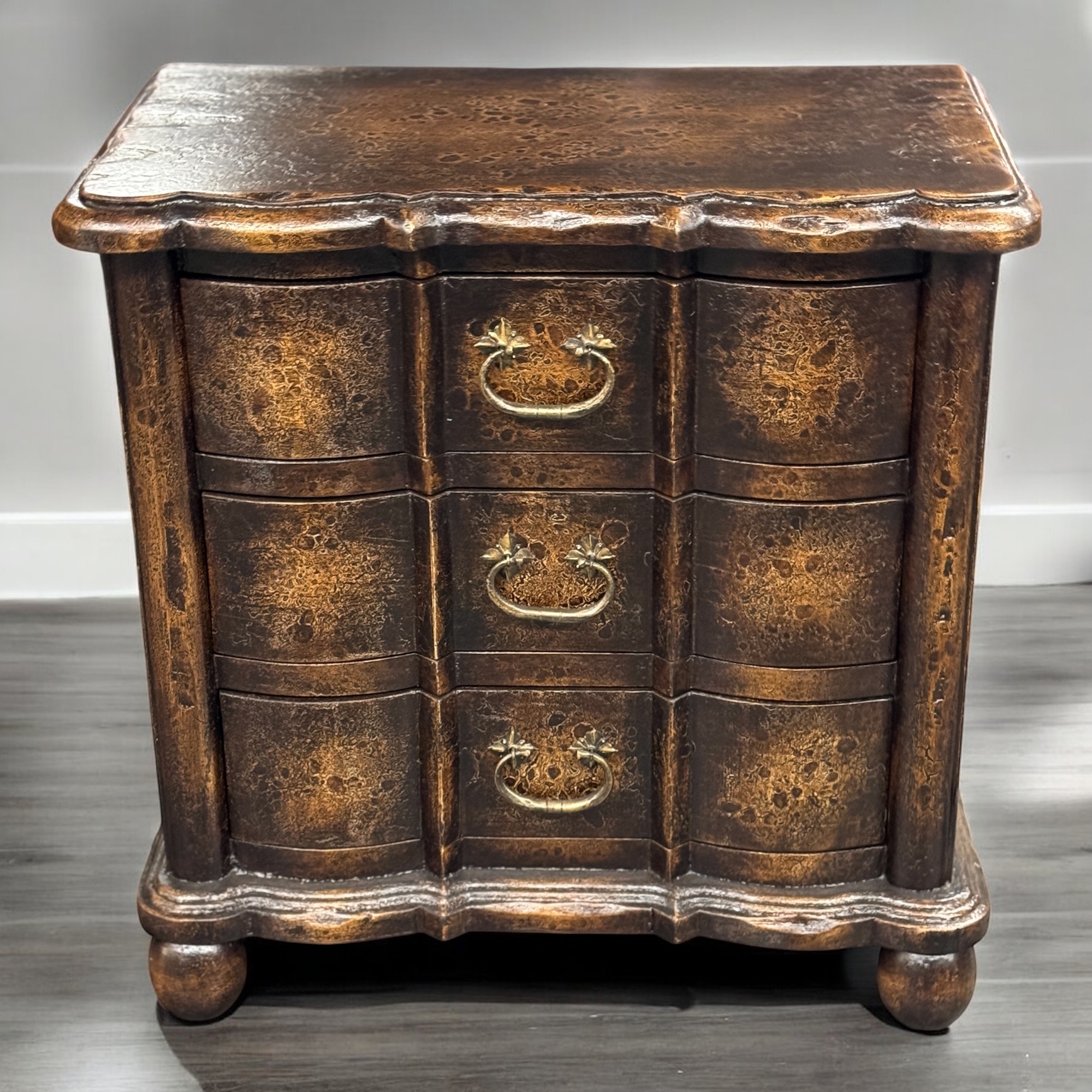 Featuring gracefully curved drawer fronts, antique-style hardware, and refined carved details, this artisan bedside table offers both elegant design and practical storage with three spacious drawers. Perfect for adding a statement piece to your rustic, western, transitional, or eclectic interiors, this nightstand exemplifies Casa Bonita’s renowned craftsmanship and commitment to quality.