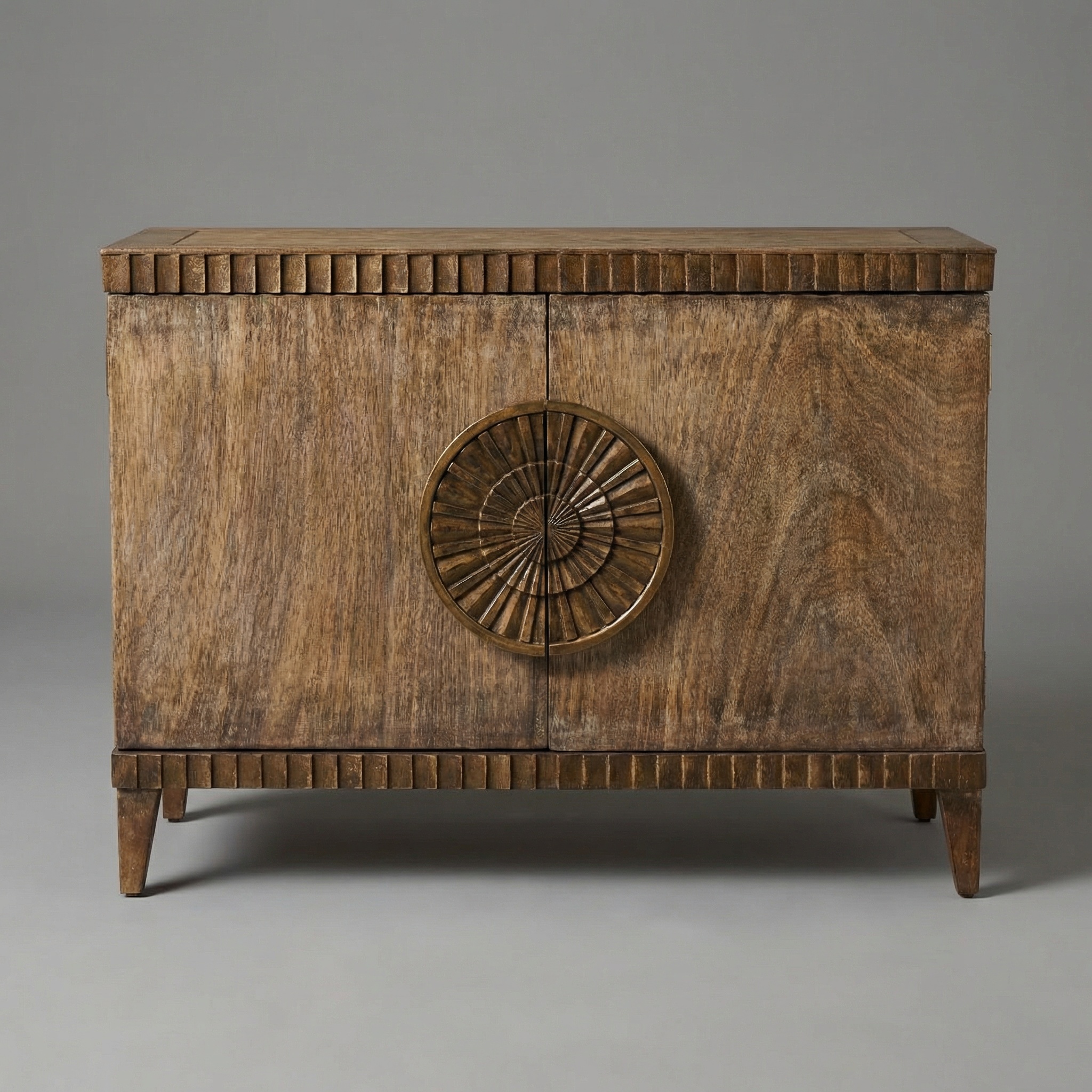 The defining feature of the Bradford Chest is its two doors adorned with circular detail handles in a muted gold finish. These elegant handles add a touch of sophistication and visual interest to the chest, while the taper legs provide stability and support.