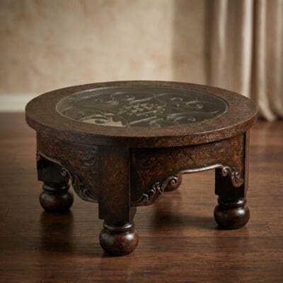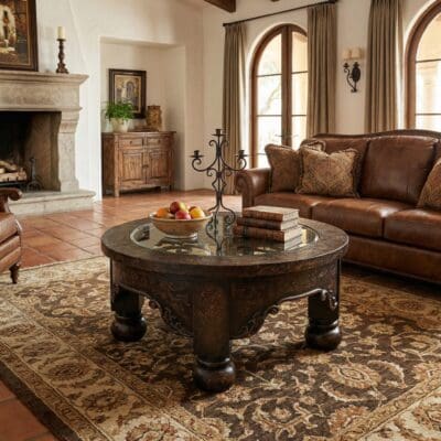 Handcrafted for both style and durability, this coffee table’s elegant scrollwork and sturdy pedestal legs bring timeless character to your space. Its versatile size and round silhouette make it the perfect centerpiece for intimate gatherings or refined living room settings.