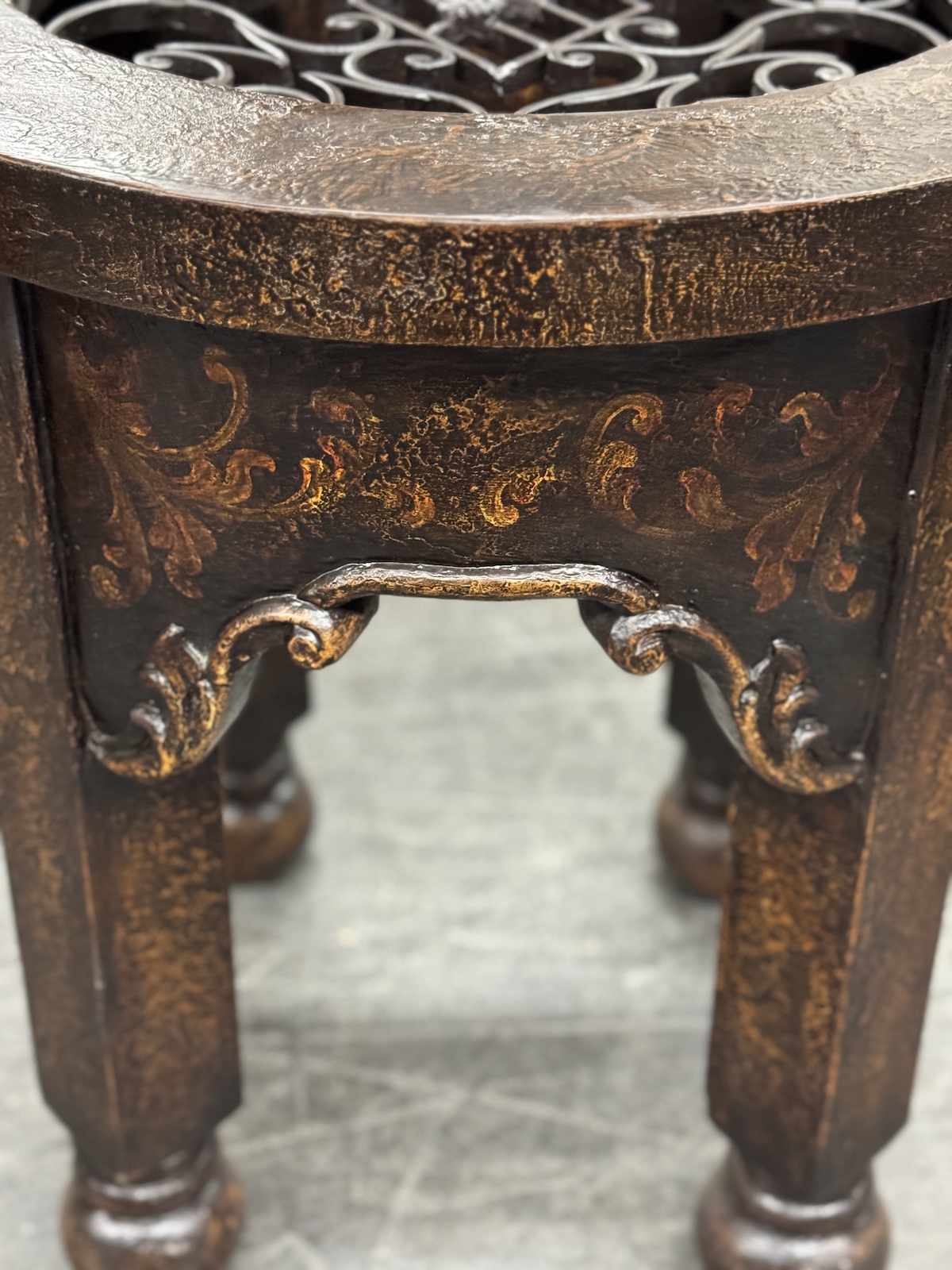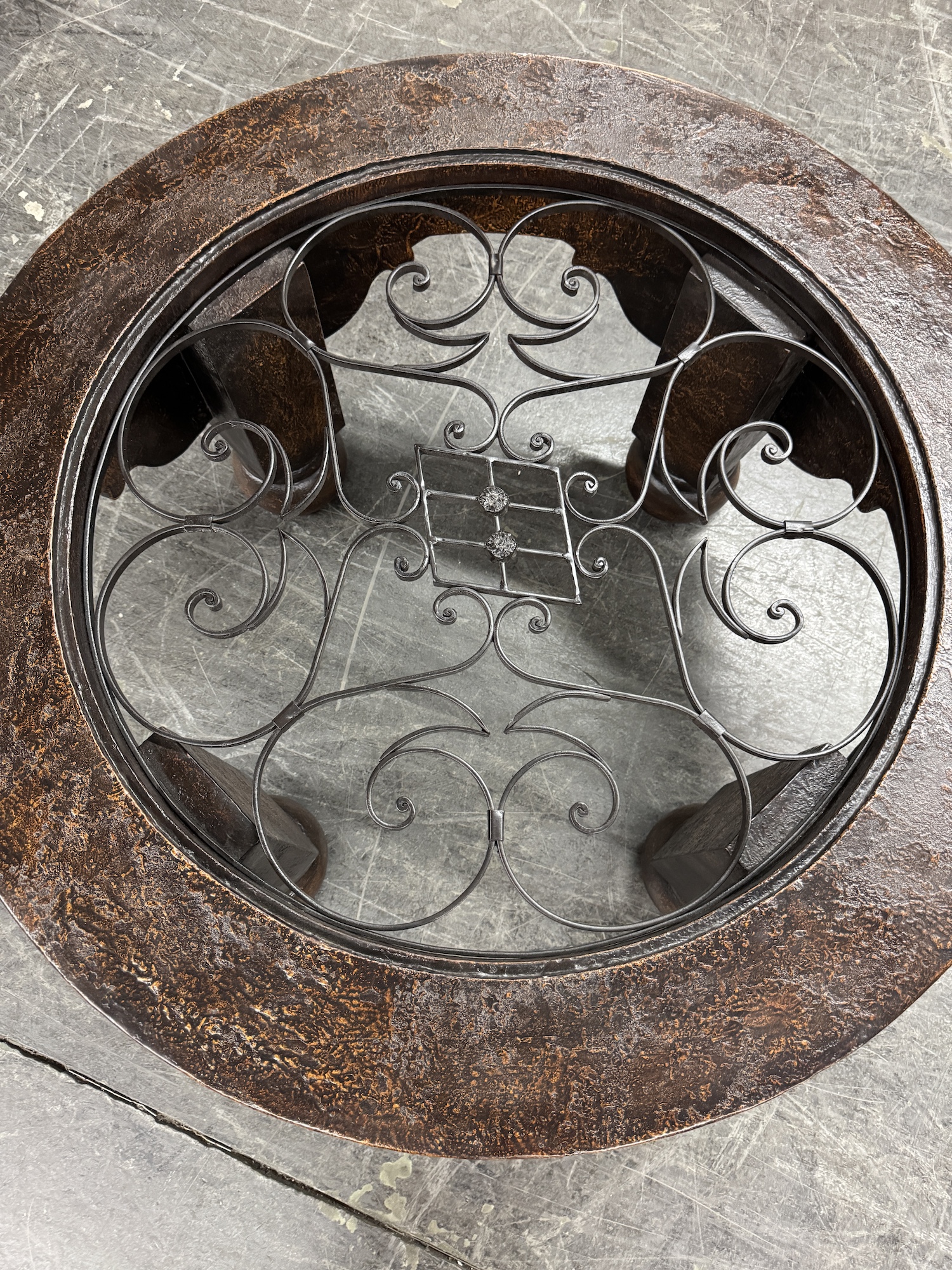 Hand-forged wrought iron base with decorative scrollwork