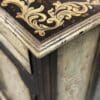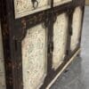 Add timeless elegance and old-world charm to your space with this stunning vintage-style narrow sideboard. Crafted from solid wood with a beautifully distressed finish, this ornate buffet cabinet features embossed metal panels with intricate scrolling details, giving it a unique French country, rustic, and antique-inspired appeal. The rich, dark wood contrasts beautifully with the aged, cream-toned metalwork, creating a piece that is both bold and sophisticated.