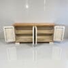 Inside, two adjustable shelves provide generous storage for dinnerware, linens, or bar essentials — perfect for a dining room, entryway, or living space. Built entirely from solid wood and finished by skilled artisans, every piece is one-of-a-kind.