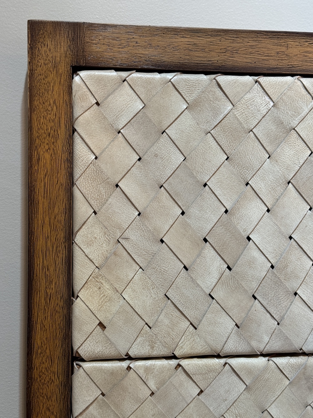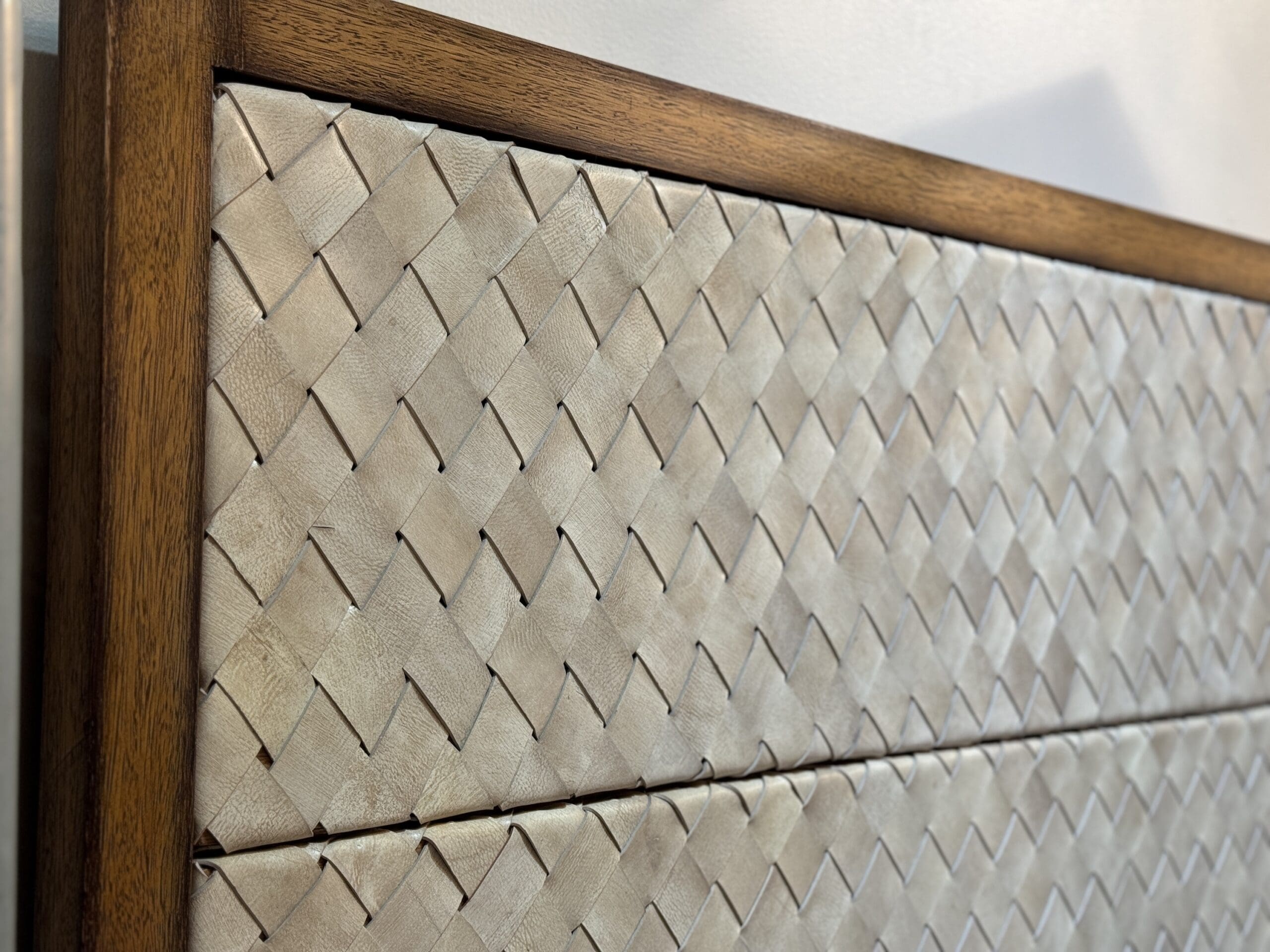 The Paracas Leather Bed brings refined craftsmanship and natural texture to your bedroom. Featuring a handwoven leather headboard framed in solid wood, this bed offers an artisanal touch that blends seamlessly into luxury, rustic, and contemporary spaces.