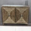The geometric carved doors create a captivating 3D visual effect, making this chest a true statement piece for entryways, living rooms, dining rooms, or bedrooms. Inside, adjustable shelves provide practical storage, while the sleek silhouette offers a versatile design that complements modern, rustic, transitional, western, and eclectic interiors.