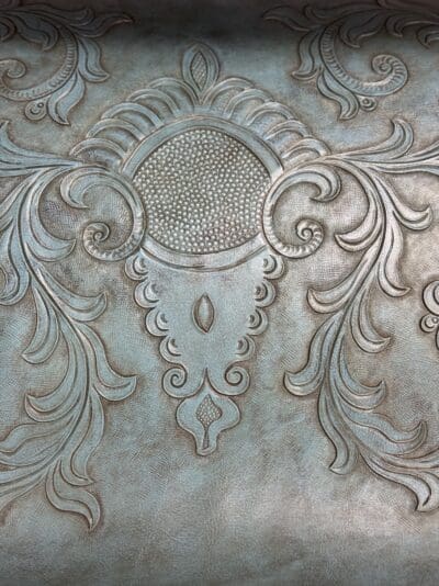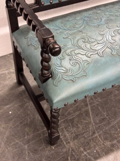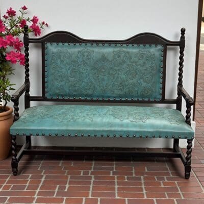 SIENNA HAND TOOLED TURQUOISE LEATHER BENCH